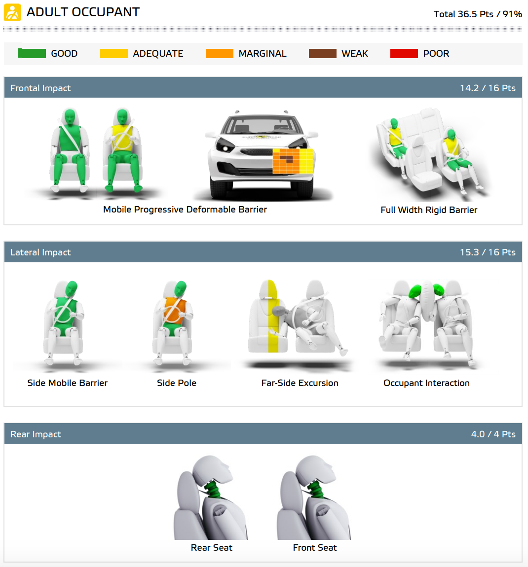 | Adult Occupant | 91% | Excellent |