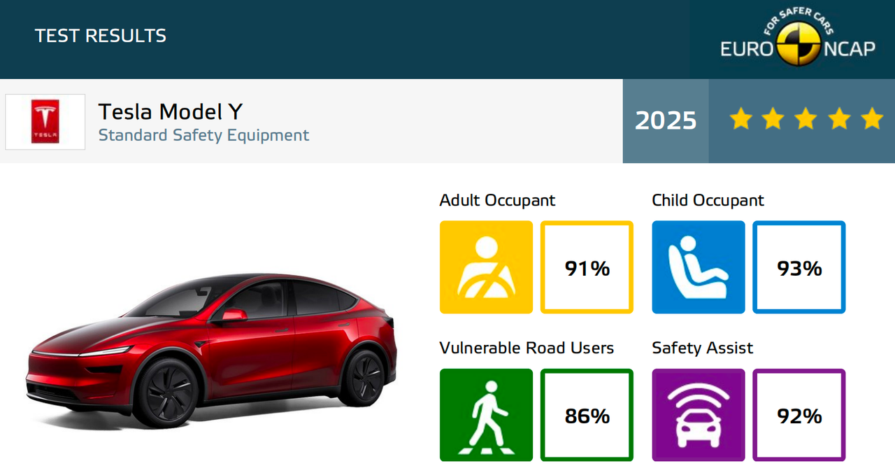 Tesla Model Y 2025 Earns 5-Star Euro NCAP Safety Rating