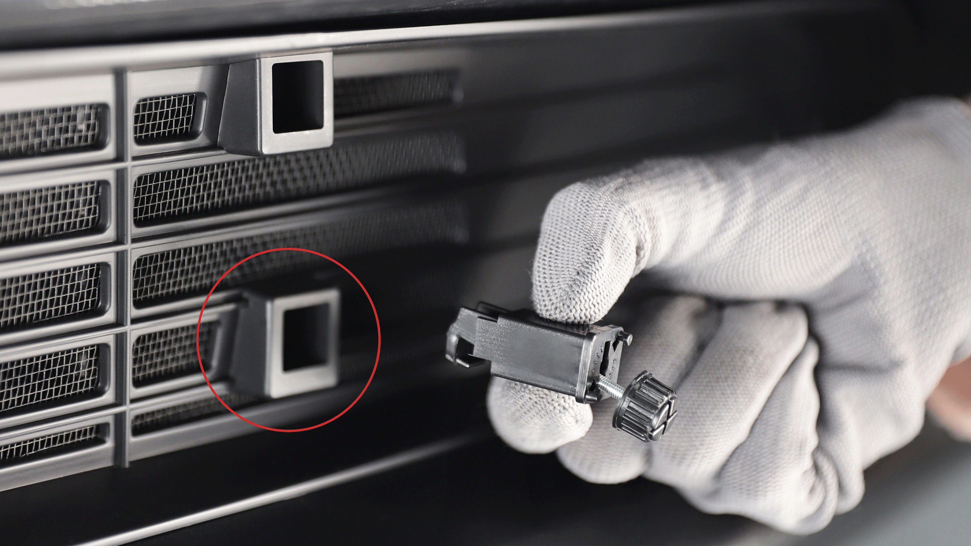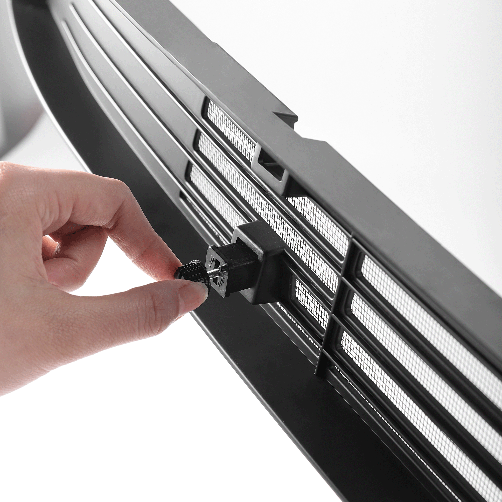 3. Insert the Locking Clip - Slide the clip into the square slot until it securely latches onto the radiator panel.